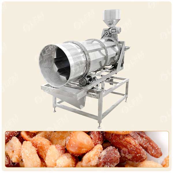 La machine à aromatiser les noix fruits à coque à rouleau est un équipement essentiel pour l’industrie de la transformation alimentaire des noix aromatisées, en particulier pour l’aromatisation des noix. Conçue dans un souci d’efficacité, de cohérence et d’uniformité, cette machine est largement utilisée pour aromatiser divers types de noix, notamment les cacahuètes, les amandes, les noix de cajou, etc.